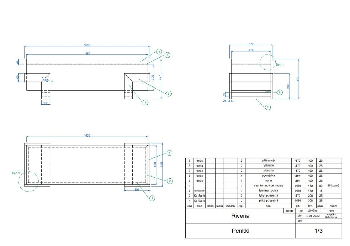 Monimateriaalisen penkin suunnittelu ja valmistus