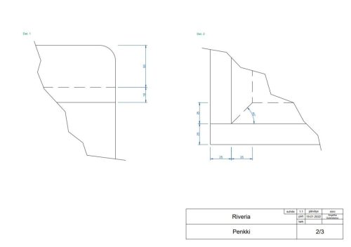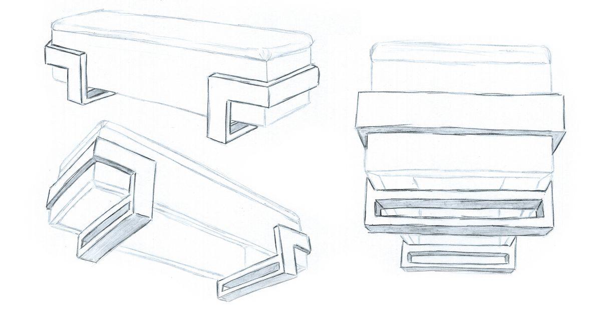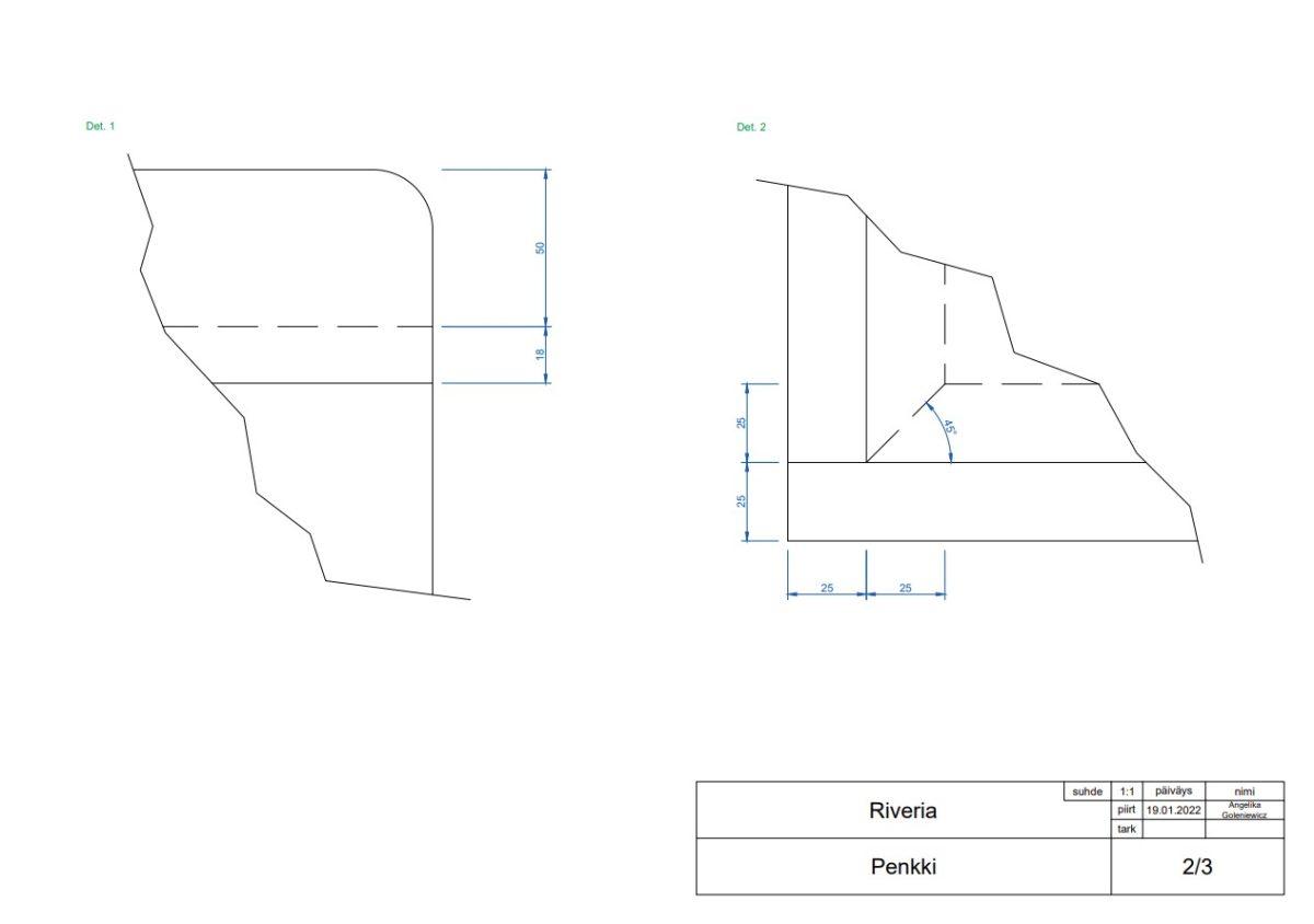 Ensimmäiset ideat tallennettiin nopeaan lyijykynäluonnokseen, joka kehitettiin myöhemmin teknisiksi piirustuksiksi AutoCADissa. Piirrettiin kaksi piirustussarjaa: toinen esitti valmista tuotetta ja toinen yksityiskohtaisia rakenneratkaisuja.