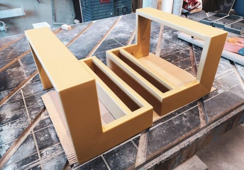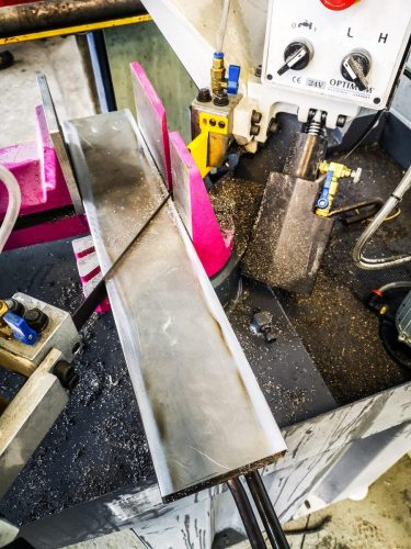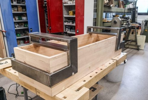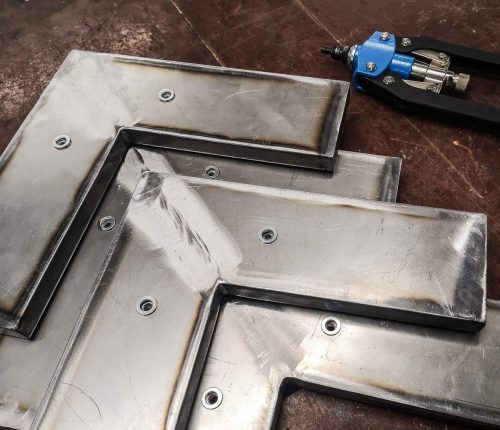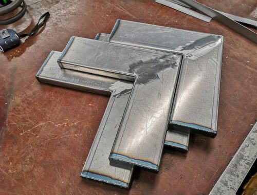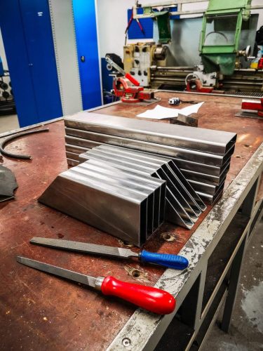 Projekti vaati räätälöityjä ratkaisuja, sillä valitut mitat eivät mahdollistaneet vakioteräsprofiilien käyttöä. Sen sijaan hankittiin U-profiileja ja lattaterästä (2 m kappaleina) ja ne hitsattiin yhteen muodostaen suorakaideprofiileja.