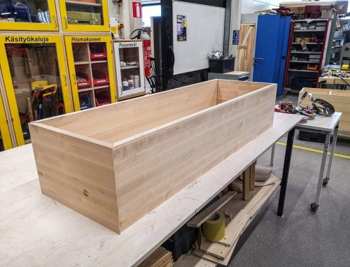 Työkuormaa tasapainotettiin useille päiville, jotta esimerkiksi petsin ja vahan kuivumiselle jäi riittävästi aikaa ja jotta vältettiin tarpeeton rasitus pitkistä työrupeamista. Tämä toimintatapa mahdollisti tasaisen etenemisen sekä turvallisuuden ja terveyden ylläpitämisen koko valmistusprosessin ajan.