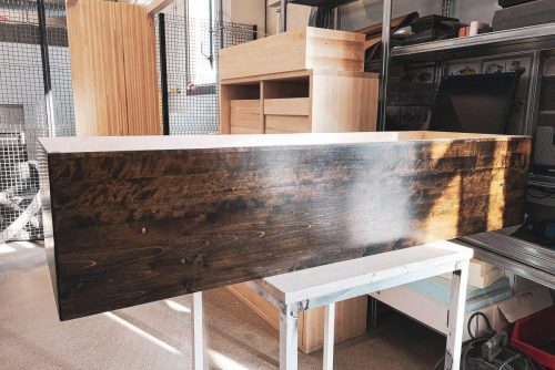 Puurunko tehtiin koivulankuista, jotka sahattiin, liimattiin levyiksi ja koottiin penkin suorakaiteen muotoiseksi rakenteeksi. Hionnan jälkeen runko petsattiin syvän tummanruskeaksi vesipetsillä. Pinnan suojaamiseksi ja luonnollisen puusyyn korostamiseksi levitettiin kolme kerrosta Osmo Color -kirkasvahaa, yksi kerros päivässä.