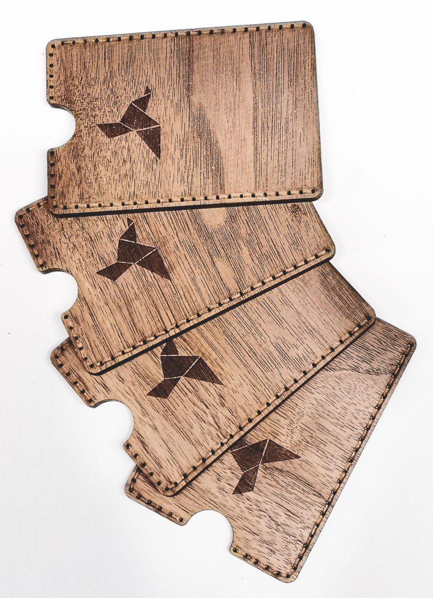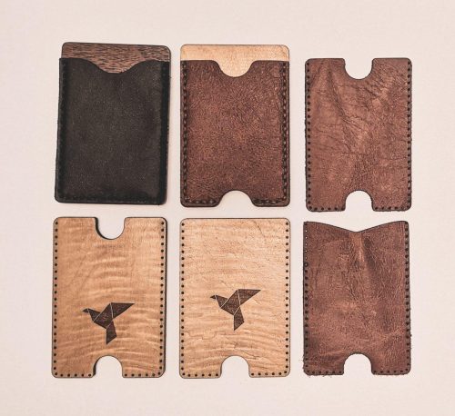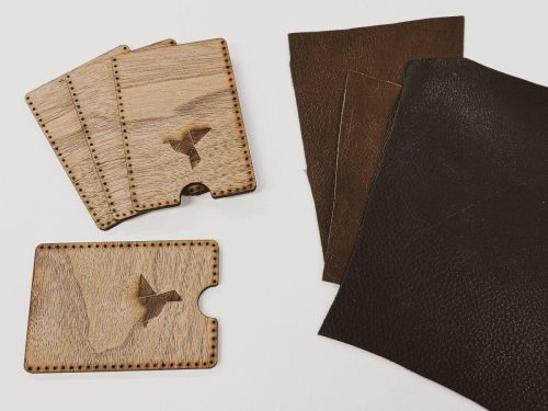 Suunnittelin ja valmistin useita ohuiden lompakoiden malleja yhdistäen puuta ja nahkaa. Laserilla leikattiin molemmat materiaalit täsmällisesti, minkä jälkeen osat ommeltiin käsin. Mallista riippuen lompakot mitoitettiin yhdelle–kolmelle maksukortille. Työt havainnollistivat, miten laserleikkaus palvelee pienimuotoista tuotesuunnittelua sekä toiminnallisesti että esteettisesti.