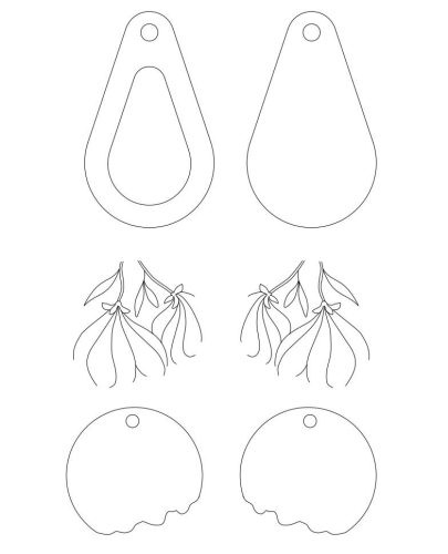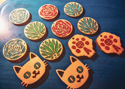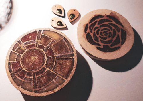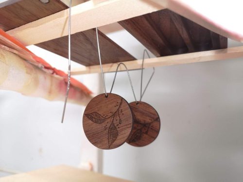Kokoelmaan sisältyi myös koruja, joissa yhdistin puun, laserleikkauksen, kaiverruksen ja hartsin. Osa korvakoruista sisälsi laserilla leikattuja aukkoja, jotka täytin värillisellä valuhartsilla; osaan kaiversin hienoja koristekuvioita; joissakin rakensin kerroksellisen puumuodon, johon valutin hartsia suoraan. Teokset näyttivät, kuinka laserin tarkkuus hyödyttää pienikokoisten, yksityiskohtaisten esineiden valmistusta.