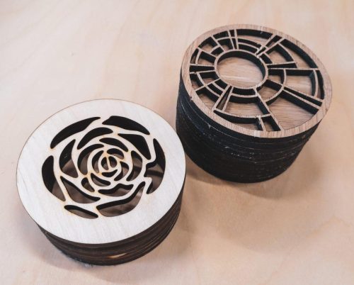 Erikoistumisopinnoissani keskityin laserlaitteen hallintaan omien tuotteiden suunnittelussa ja valmistuksessa. Tavoitteena oli osoittaa, kuinka monipuolisia laserleikkaus ja -kaiverrus ovat, kun niitä yhdistetään erilaisiin materiaaleihin ja rakenneratkaisuihin. Kaikki tuotteet suunniteltiin suoraan Rhinoceros-ohjelmistossa, jossa laadin myös leikkuutiedostot ja vein ne laserille .dxf-tiedostoina.