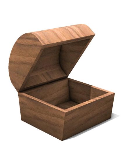 Isommassa saksanpähkinäarkussa kokeilin toisenlaista rakennetta: kerrostamisen sijaan liitin osat sormiliitoksilla ja tappiliitoksilla, mikä toi rakenteeseen lujuutta ja kestävyyttä. Saranoina käytin jälleen suoraan puuhun liimattuja nahkahihnoja kevyen ratkaisun saavuttamiseksi. Kummallekin sivulle tein laserkaiverruksia, korostaen, miten perinteiset puusepänliitokset voidaan yhdistää digitaaliseen valmistukseen.