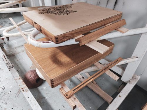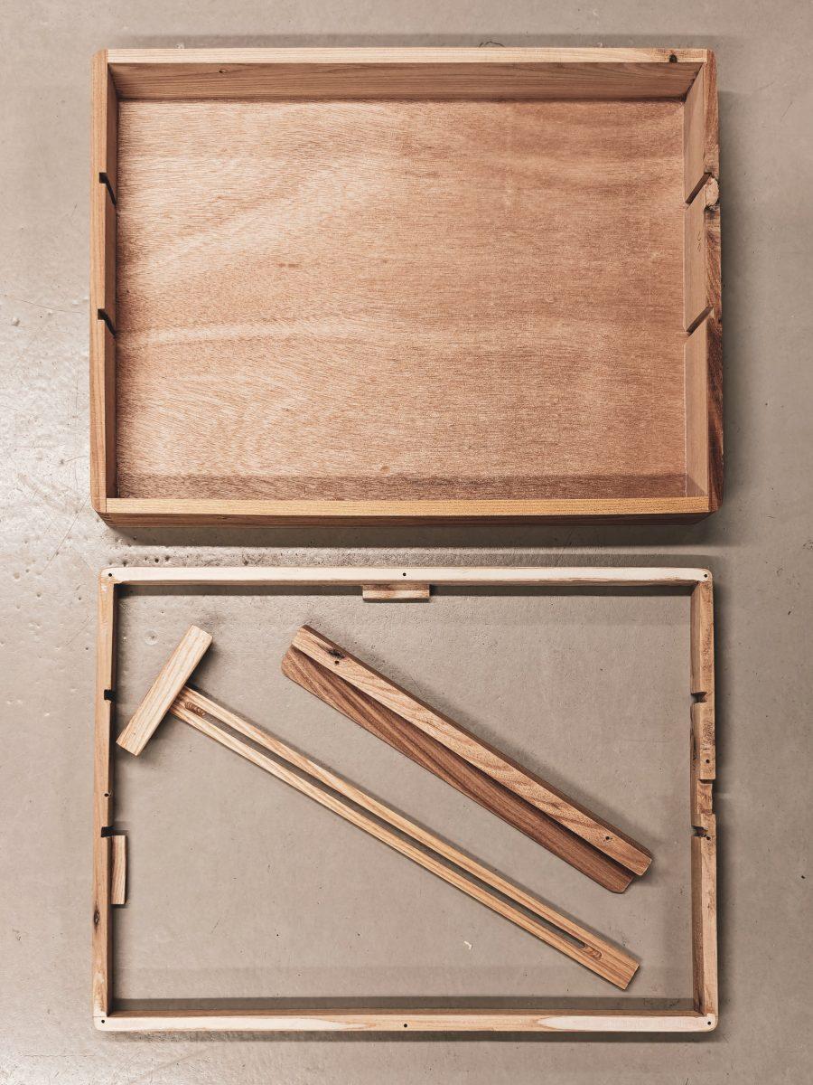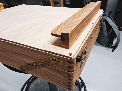 Tämä projekti oli toimeksianto vintage-pöytämaalaustelineen entisöimiseksi. Telineellä oli asiakkaalle suuri tunnearvo, sillä se oli kuulunut hänen äidilleen, joka oli myös taiteilija. Siksi tavoitteena oli säilyttää mahdollisimman paljon alkuperäistä rakennetta. Tehtävänäni ei ollut tehdä uutta esinettä, vaan tasapainottaa korjaus, säilyttäminen ja käytettävyys niin, että telineen luonne säilyy ja sitä voidaan yhä käyttää.